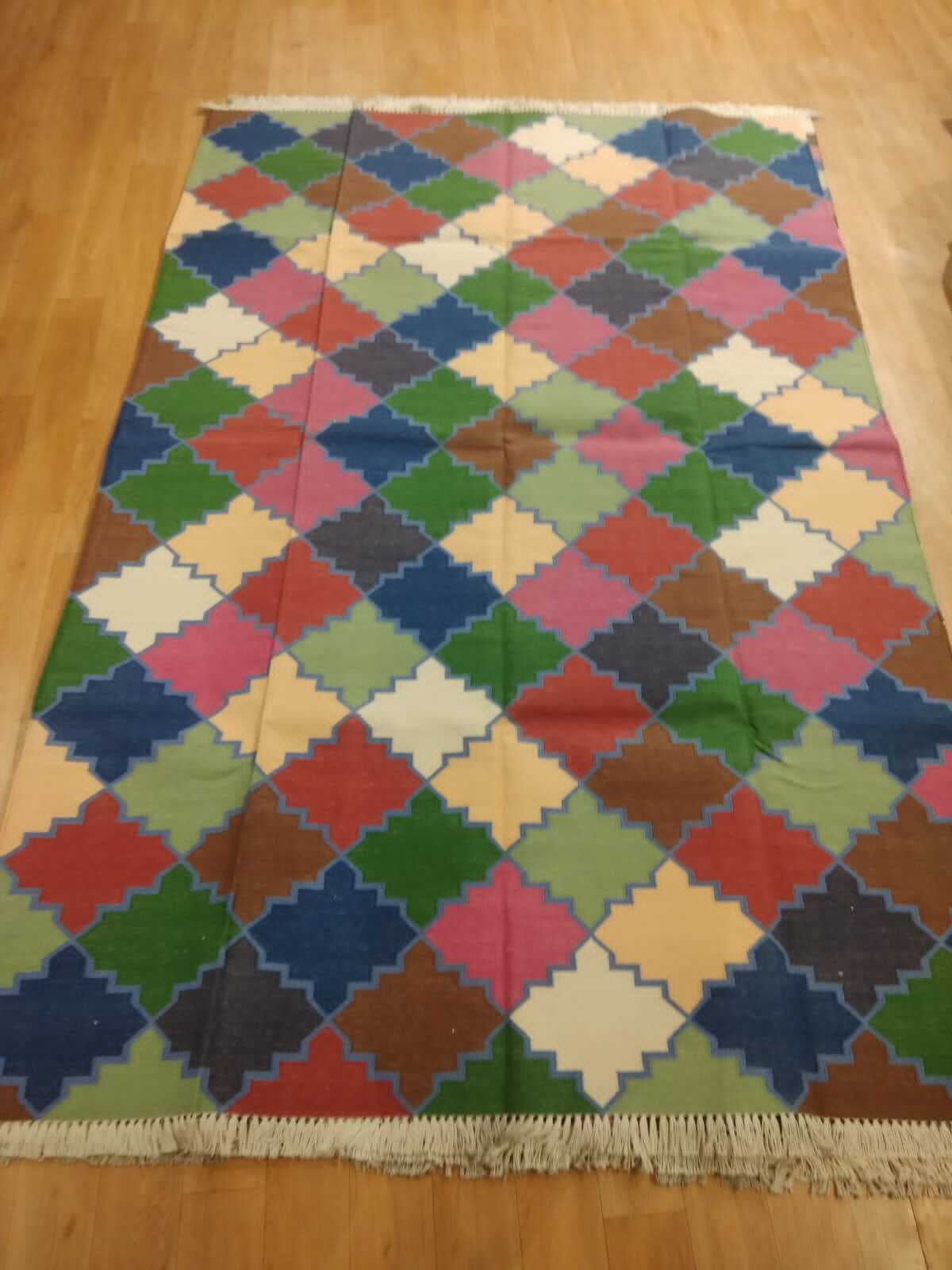 The Panja Dhurries are one of the classical Indian handwoven dhurries. These dhurries are handwoven and the design is perfected with the use of the Panja, a metallic claw-like tool used to beat and set the threads in the warp.